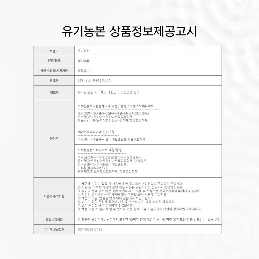 유기농본 순면커버 대형6팩 + 중형8팩 + 소형4팩 + 오버나이트6팩 + 팬티라이너8...