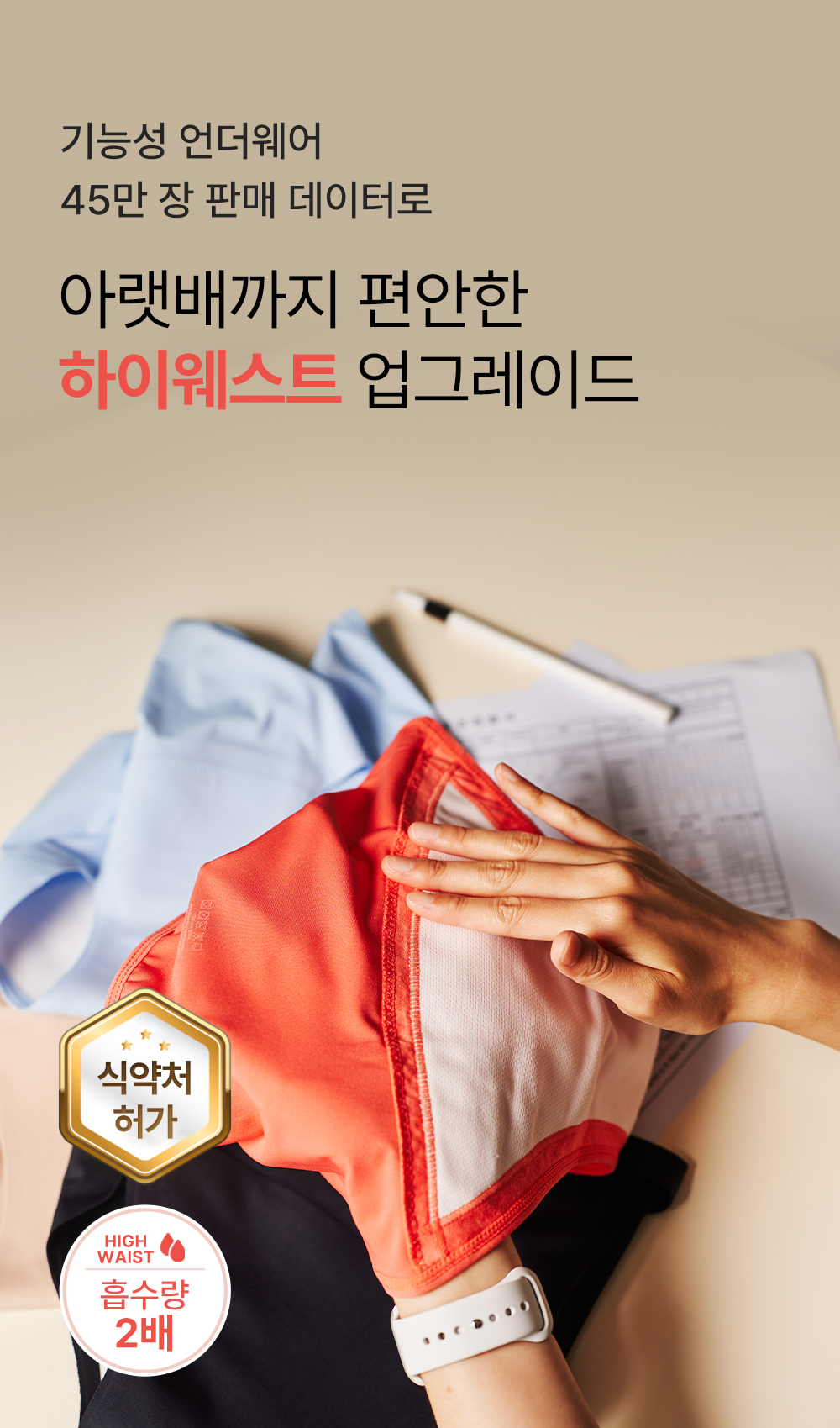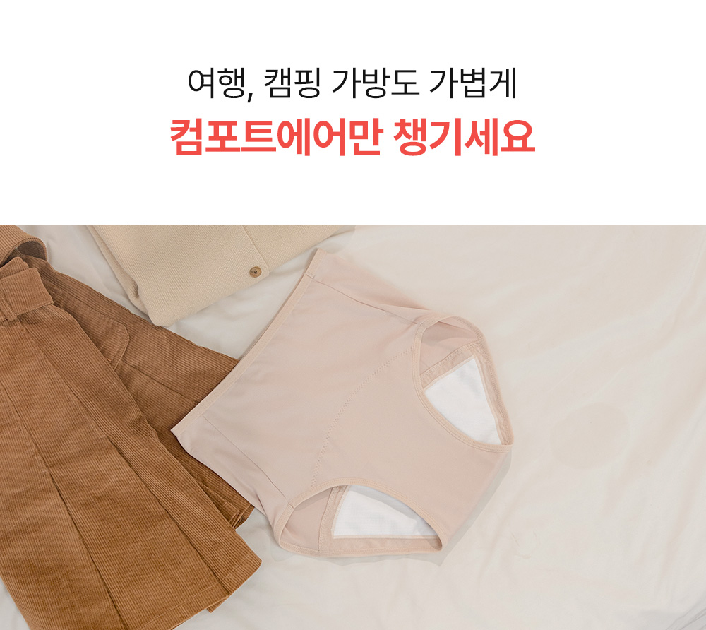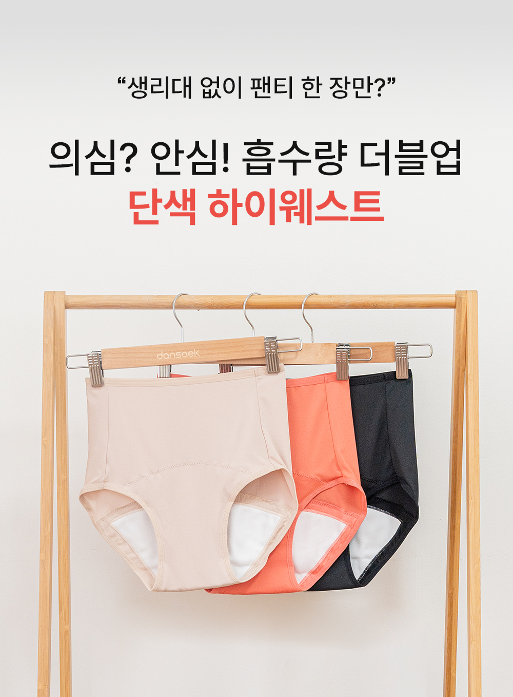 단색 컴포트에어 하이웨스트 생리팬티 3장 SET + (증정) 효소세제 300ml + 방수 파우치