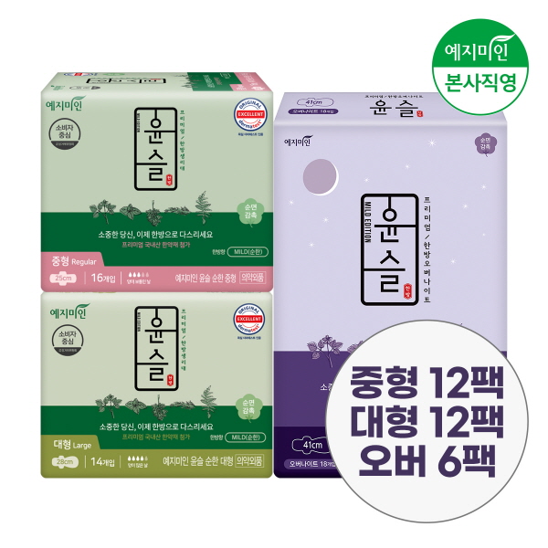 [한방]윤슬 중형 16Px12팩 + 대형 14Px12팩 + 오버나이트 18Px6팩