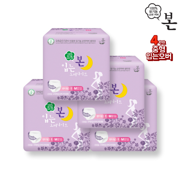 유기농본 순면커버 입는오버나이트 중형 8매 * 4팩